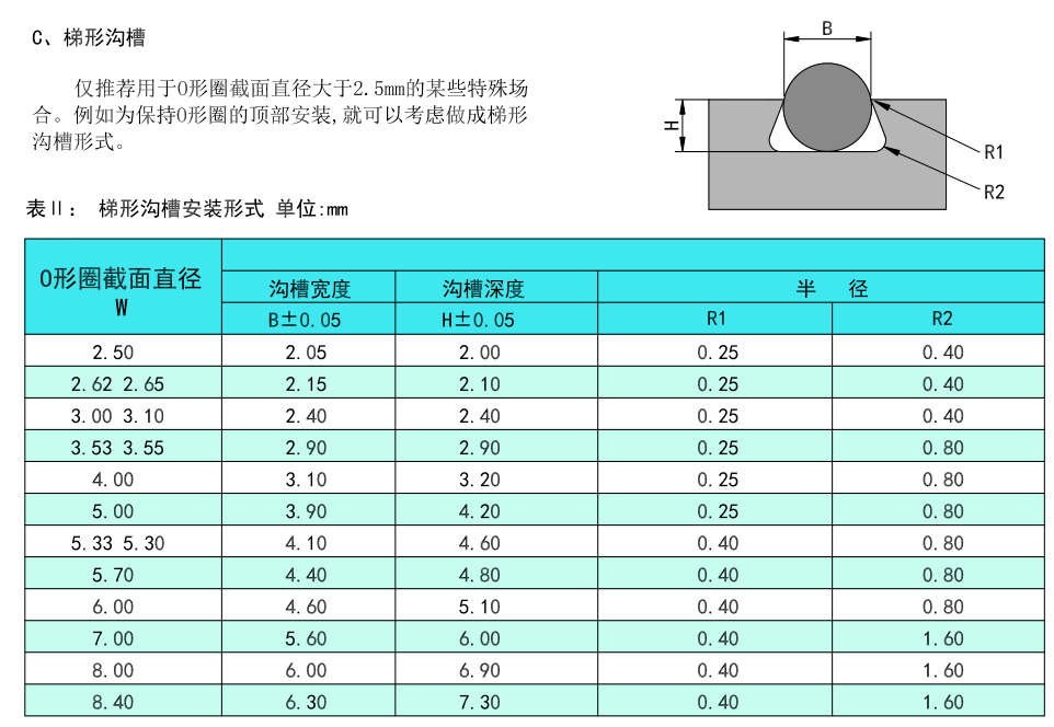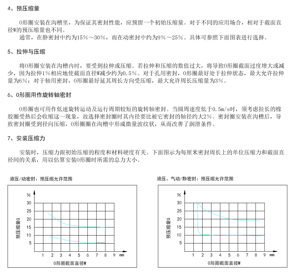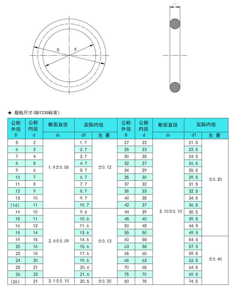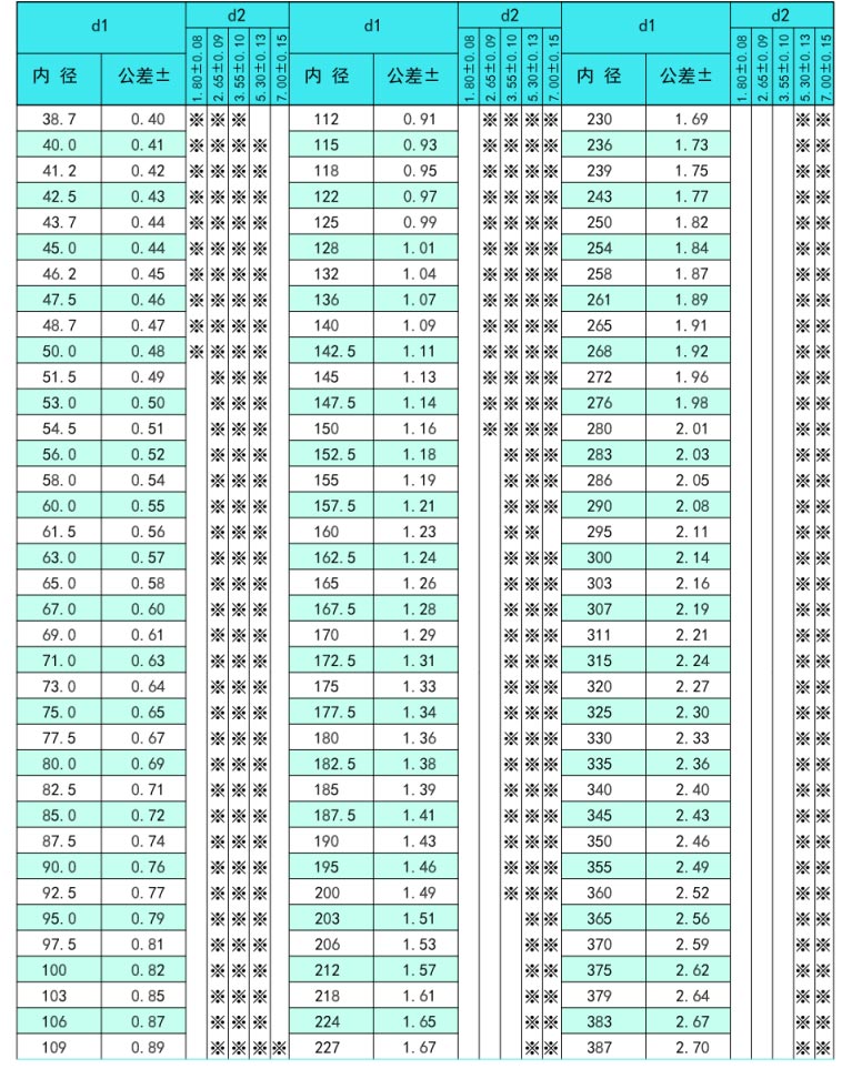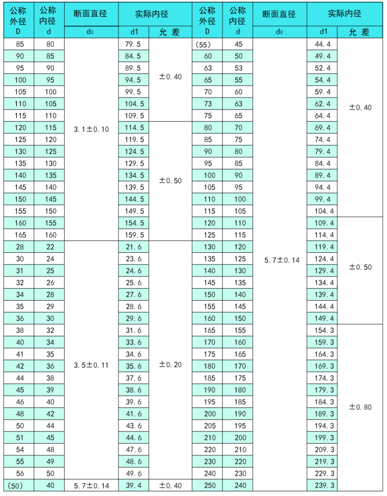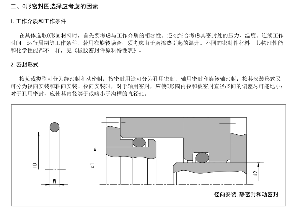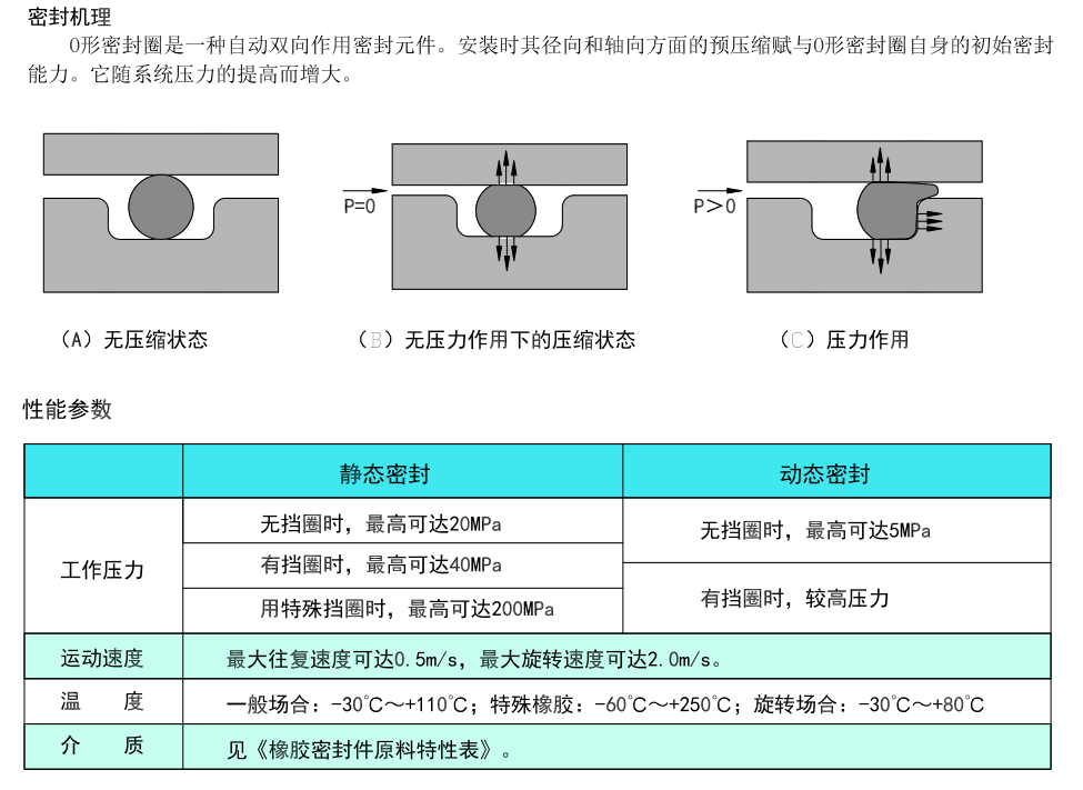 O形密封圈简称O形圈,是一种截面为圆形的橡胶圈。O形密封圈是液压密封、气动密封系统中使用最广泛的一种密封件。O形密封圈有良好的密封性,既可用于静密封,也可用于往复运动密封中;不仅可单独使用,而且是许多组合式密封装置中的基本组成部分。它的适用范围很宽,如果材料选择得当,可以满足各种运动条件的要求,工作压力可从1.333×105Pa的真空到400MPa高压;温度范围可从-60℃到200℃。